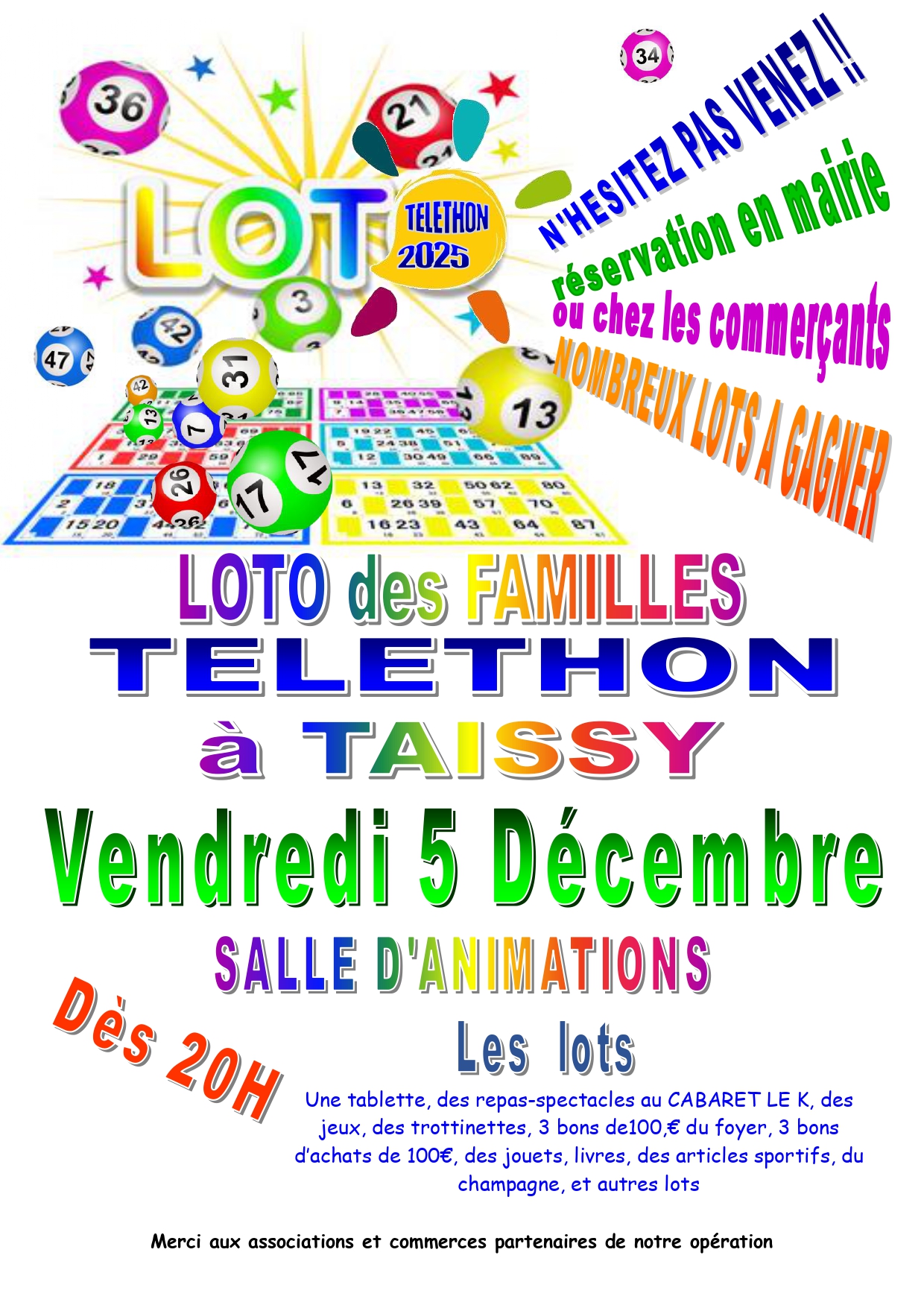 A gagner : Une console de jeux, des bons de 100 euros du foyer communal, des bons d'achats, des articles de sports, des jouets, des paniers garnis, du champagne et bien d'autres lots ...