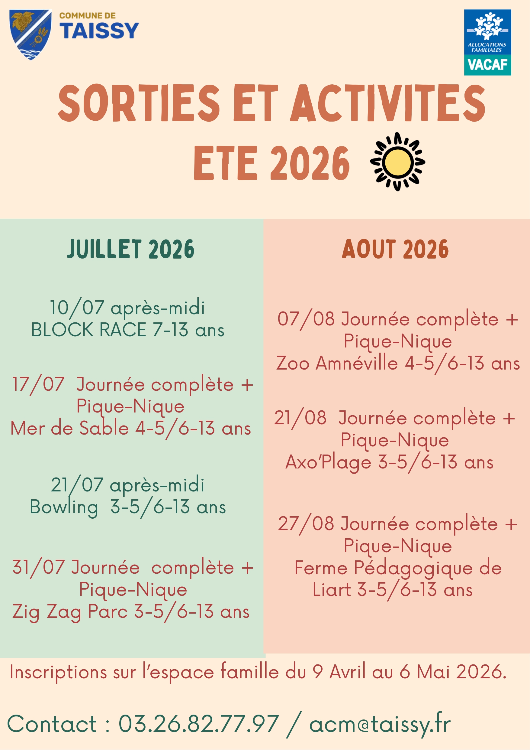 Renseignements auprès d’Elise et Antoine par mail à acm@taissy.fr ou par téléphone au 03.26.82.77.97.